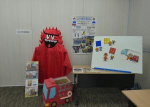 セミナー開催中は、活動状況の写真や広報誌、グッズ等を会場内で展示しました。