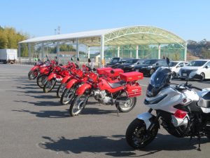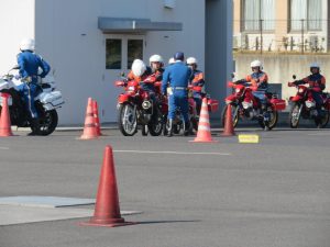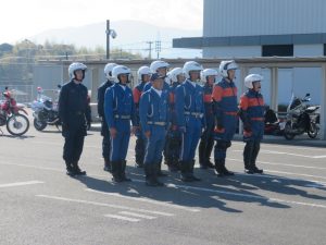 赤バイと白バイの初の合同訓練を行いました。